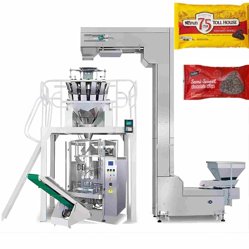 When chocolate chips run fast through a machine, friction creates heat, causing them to melt and clog the weigher. The LTC VFFS system prevents this by using Dimple Plate Buckets (embossed surface) which reduce the contact area by 70%. Additionally, the weigher can be enclosed in a Climate-Controlled Cabinet to keep the product cool and dry.