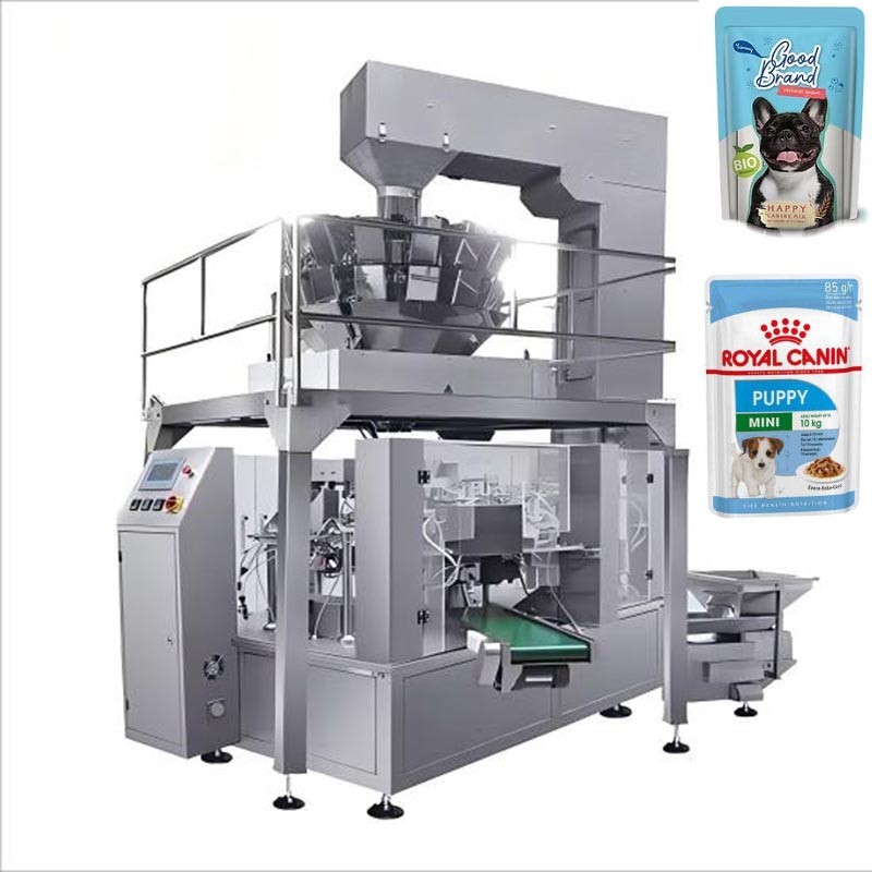 The ideal packaging solution for Premium Pet Treats. This Rotary Machine automates the filling of Stand-up Zipper Pouches with Beef Jerky, Freeze-Dried Liver, or Biscuits. It ensures a strong hermetic seal to lock in the "meaty" aroma that pets love.