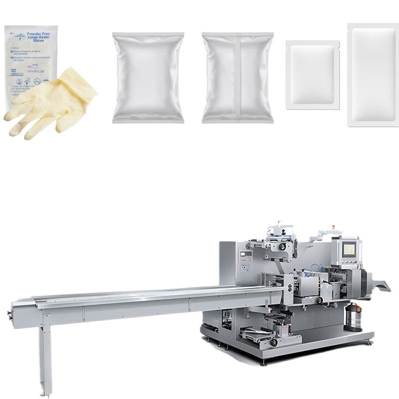 The cost-effective solution for Examination and Industrial Gloves. This High-Speed Flow Wrapper packs Nitrile, Latex, and Vinyl gloves quickly and neatly. It supports both Single Pair packing (for hair dye kits) and Soft Stacks (for retail multipacks).