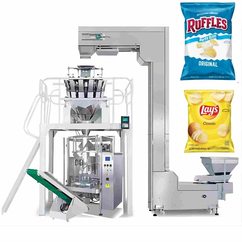 Potato chips and puffed snacks are extremely fragile and sensitive to oxygen. A standard machine might crush the chips or leave too much air inside, leading to stale products. Our LTC-VFFS system uses a Gas Flush Device to fill the bag with nitrogen (N2) and an Inclined Hopper to slide the chips gently into the bag, ensuring they arrive to the customer whole and crunchy.